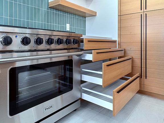 all new professional-grade appliances including French door refrigerator with lower drawer freezer (with automatic ice maker), 36" 6-burner gas range with convection oven, whisper quiet dishwasher with internal lighting and off-the-counter drawer microwave