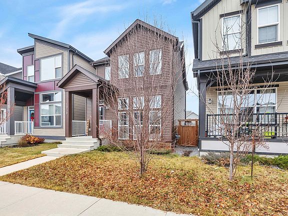 Stunning 2 story in Southwest Edmonton! Bright and grand feeling as you walk in with high ceilings and walls of windows facing East and West drenching this home with sun, white cabinets with quartz counters, large island and a dining area with 11 foot ceilings. Basement has 9' ceilings, a large rec room that is open to above bathing the basement in natural light as well. Primary bedroom has large windows, walk in closet and en suite. Home totals 3 bedrooms, 2 and a half bathrooms and has room for another in the basement if you wish. This home also includes Air Conditioning, solar panels and a brand new double garage! If a hot tub is your wish the West facing deck has been built to carry one and electrical is installed and ready to hook up! This home is conveniently located 1 block from an elementary school, 3 blocks from a high school and rec centre, 4 blocks from shopping and has easy access to 41st ave.