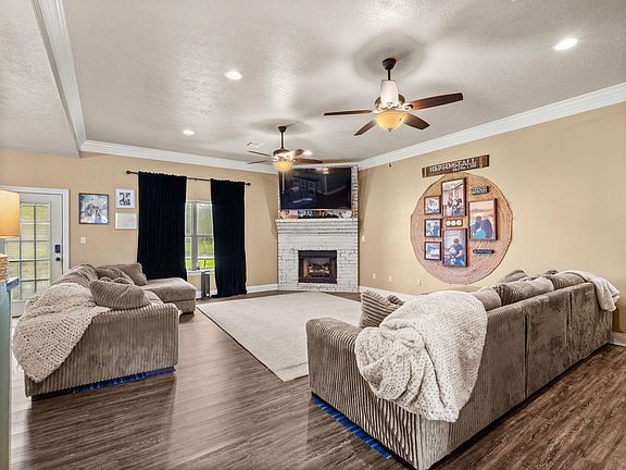 Beautiful 4 bedroom 2 bath home on over an acre of land. Open split floor plan. Formal dining room, breakfast area and eat kitchen bar. Plenty of storage in this kitchen, stainless appliances, light cabinets and beautiful butcher blocker cabinet tops. Grand master bedroom has a wonderful closet and comes with master bath that has separate shower and lower tub. Very big living room with fireplace, great big windows over look the nice back patio.