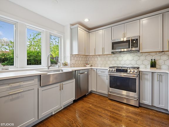 Wonderful bright and spacious all-brick corner townhome at sought-after Larrabee Court II in Lincoln School District. This recently updated home features a gorgeous new white kitchen with a large window overlooking your private yard. The kitchen has a new tile backsplash, quartz counters, and stainless appliances. Open concept to your dining area and your wide living room with a corner fireplace. The sliding glass doors lead you to your fully fenced, private patio that wraps the home perfect for outdoor entertaining and dining and even a basketball game! The main floor also offers a convenient half bath. Up the stairs is your primary bedroom with its ensuite bath and a fully organized walk-in closet, plus two more bedrooms and another full bath. Stepping down to the lower level is a large, inviting family room and a large laundry/utility room. This townhome offers amazing storage throughout. The Lincoln Park location is a highly desirable walk to everything, parks, beach, lakefront, zoo, shopping & dining. 1-car garage included - Welcome Home!