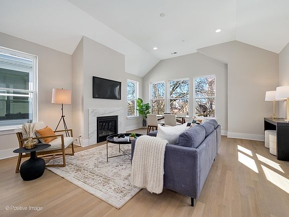 OVERSIZED LOT PLUS LENDER CREDIT!! This designer penthouse truly lives like a single family home with it's own private entrance. Built by KJM Construction, it features 3 beds, 2 baths, full roof deck, and private, direct entry with foyer. This massive home is complete with stellar private outdoor space to make your own Urban Oasis, truly living like a single family home with yard and all. Professionally designed and extensive architectural details throughout from the floor plan to all of the intricate design palette. The main living area has 3 1/4 white oak HDWD floors and separate formal dining and living area. The kitchen features custom cabinets and quartz countertops and backsplash, GE Cafe appliance package, massive island with wine fridge and tons of storage. The main living space is wide open, flooded with natural light. The kitchen opens to the family room including a gas fireplace and dining area ready for the entertaining and party to begin! The primary bedroom has a large walk-in closet and ensuite bath that includes a double vanity and separate, walk-in shower to complete the spa experience. The other two generous sized bedrooms have custom closets and a designer bath easy to share. All bathrooms feature Delta Trinsic plumbing fixtures. One of the bedrooms could be utilized as a flex room: playroom, home gym, office, or den. 1 car garage parking available. Amazing location in Logan Square. Close to many restaurants, bars, and the 606 trail. Some of the trendy new spots include Scofflaw, Giant, Parson's, The Moonlighter, Park & Field, Lonesome Rose and Osteria Langhe.