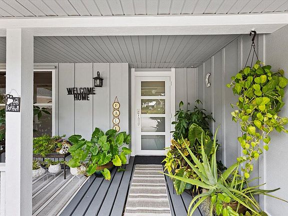 Welcome to your dream home! This beautifully updated 4-bedroom, 2-bath home located in a serene and highly sought-after gated community. Enjoy the peace of mind that comes with security and privacy, along with the option for voluntary membership to three prestigious golf courses.This bright, open home features vaulted ceilings, a cozy wood-burning fireplace, and a spacious modern kitchen with stone countertops and newer stainless steel appliances. Major upgrades include a new roof (2022) on both the home and detached garage (30-year warranty), newer gutters, flooring, bathrooms, and a 6-foot privacy fence.Relax in the tranquil backyard oasis with new pavers (2023) and lush landscaping that backs up to the Hammock Preserve for added seclusion--plus ample space to add a pool. The oversized two-car garage features a newly refinished floor in mint condition.