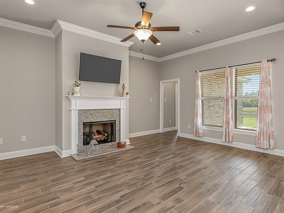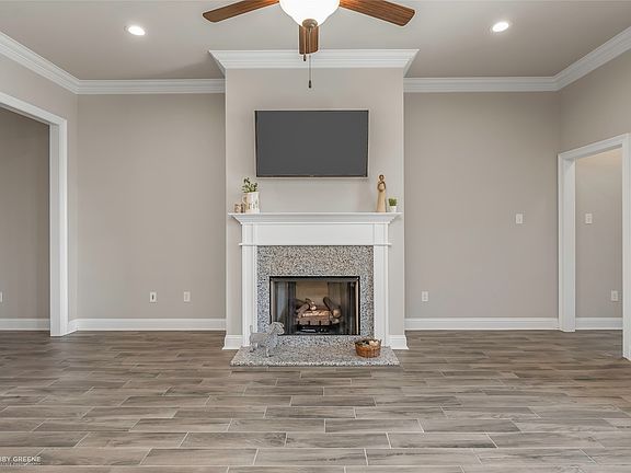 This beautiful 3 bedroom, 2 bath home located in the quiet serene Beauclaire gated community in South Bossier City shows like new and won't last long! Built in 2019, this home offers modern features, comfortable living spaces, and scenic views in a quiet, friendly neighborhood. Step inside to an inviting open floor plan perfect for entertaining or relaxing with family. The living room features wood look ceramic tile flooring, a lovely gas fireplace, a generous mantel for your holiday decorating, a wall of windows for natural light, and a great view of the community pond behind the home. The kitchen features granite countertops, a large island-breakfast bar, stainless appliances including a gas range and refrigerator, and plenty of cabinets as well as a separate pantry for ample storage. The eat-in breakfast area is also surrounded by windows and a view to the covered back patio and nice sized backyard. The remote primary suite provides privacy and includes a spacious bathroom with double vanities, granite countertops, framed mirror, a separate soaking tub, a large tiled shower, and a large walk-in closet. Two additional bedrooms with ample closets and a full bath with granite countertops are on the opposite side of the home and have been rarely used. Enjoy the outdoors year round from the covered front entrance or the covered back patio, which has been extended to create a perfect space for grilling and entertaining. The backyard overlooks the community pond, offering peaceful water views and access to a stocked pond reserved for Beauclaire resident's fishing enjoyment. Additional features include a large utility room with cabinets, a mud bench, a two car garage, energy efficient construction, and easy access to award winning schools, shopping, dining, and Barksdale AFB. This home offers the perfect combination of modern comfort, thoughtful design, and community amenities in a desirable South Bossier location! Schedule your private showing today!