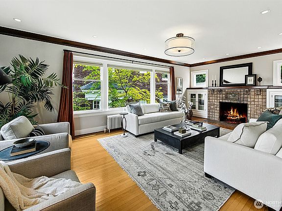 Perfectly positioned on the north end of Capitol Hill, this 1926 Colonial offers front-row views of the lake, Mt. Baker, and the Cascade range. Inside, rooms connect with ease to balconies, patios, and a fully fenced backyard. Upstairs, three bedrooms and two baths include a primary suite with a private balcony—an ideal spot for morning coffee or sunset evenings. The kitchen, has a built-in banquette and looks onto the garden to invite lingering meals, while the lower level provides a spacious family room, guest quarters, laundry, and storage. With Interlaken Park at your doorstep, and Volunteer Park 4 blocks west, city and nature unite. Alley garage parking and coveted location complete the story of this home with views from every level.