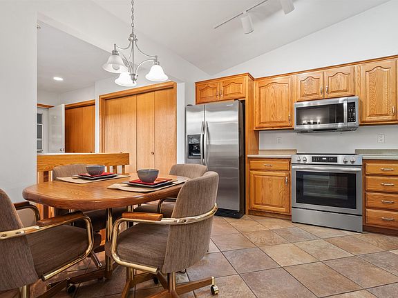 This stunning Ranch condo is just steps from Sunnyside Country Club, offering a perfect blend of comfort and convenience. The main floor features soaring vaulted ceilings, a spacious kitchen with Corian countertops and oak cabinets, and a generous dining area. The expansive living room boasts a cozy gas fireplace and a reading nook with sliders leading to a lovely deck. The primary bedroom is a standout with three closets and a large en-suite bathroom. There's also a second bedroom, a full bath, and a convenient laundry area on this level. The lower level includes a family room, a third bedroom, a full bath, and a fourth non-conforming bedroom, along with plenty of storage space. Outside, enjoy beautifully landscaped grounds, an attached double garage, and a deck perfect for relaxation. Condo fees are $250 per month, covering water, sewer, garbage, lawn care, snow removal, and exterior insurance. Plus, the furnace and AC were replaced in 2020, ensuring comfort year-round. Don’t miss the opportunity to make this exceptional property your home!