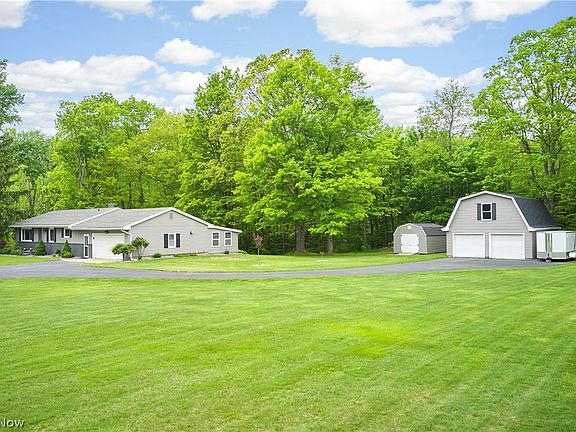 Beautiful Move-In Ready Ranch with 4 Car Garage, Finished Basement, and Sunroom! Fantastic Location! 3 bed, 2 bath. Nestled at the end of the street and surrounded by nature, you will be welcomed by the meticulously maintained grounds that provide amazing curb appeal. This must-see property sits on over 1.5 acres and offers many upgrades! Upon entering the home you will be welcomed by the spacious living room with a large picture window that lets in plenty of natural light. Under the new carpet in the living room and bedrooms, you will find hardwood floors. The updated eat-in kitchen features gorgeous white cabinetry, leather granite countertops, stainless steel appliances, and vinyl plank flooring. Down the hall offers master bedroom with a half bath along with two additional good-sized bedrooms and a full bath. The nice spacious finished basement features a propane-burning fireplace with remote control for easy functioning and laundry/storage space. Right off the kitchen is the oversized two car attached heated garage with a fully functioning kitchen and appliances that stay. Off the garage, features the bright and airy 28x12 sunroom with wall-to-wall windows, perfect for enjoying the peaceful backyard, complemented by a tranquil creek. Patio doors lead out to paver patio, perfect space to enjoy the outdoors. A huge 24x28 pole barn and brand-new shed provide an overflow of storage possibilities. All appliances stay. This property is immaculate, well-cared for, and move-in ready.