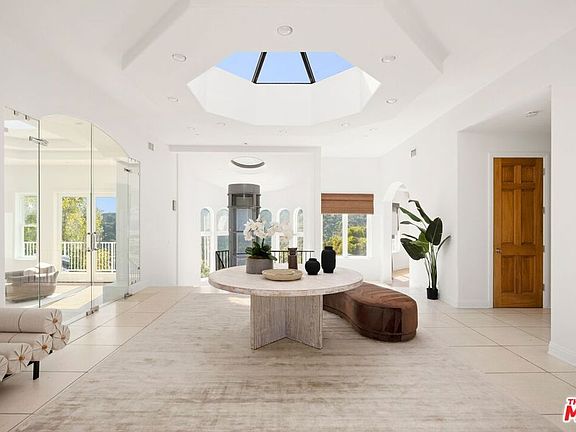 Back on the market at an unmatched price per square foot. This thoughtfully designed residence combines clean, modern architecture with exceptional scale and natural light throughout. Ideal for art collectors and entertainers alike, the home features expansive walls, soaring ceilings, and skylights that illuminate its open layout. The main level offers formal living and dining rooms, a large entertainment room, and a chef's kitchen with premium appliances. Six bedrooms include a stunning primary suite with dual spa-style bathrooms and oversized walk-in closets. Two additional en-suite bedrooms on the same level offer both privacy and proximity, perfect for family living. On the lower level, two guest suites- each with its own living area and kitchenette- provide comfort and flexibility for extended stays or multigenerational living. Additional amenities include a library, gym, auna, custom built-ins, wine storage, and multiple wet bars. French doors open to private balconies with sweeping canyon, city, and ocean views, while the backyard offers a pool and spa designed for entertaining. Located in one of Bel Air's most prestigious neighborhoods, this home delivers extraordinary space, luxury, and lifestyle. Agent is related to ownership.