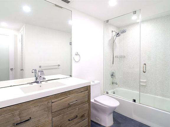 Impeccably renovated 1-bed, 1-bath condo on the 9th floor showcasing stunning canal views from a private balcony. Upgrades include sleek granite counters, stainless steel appliances, glossy tile floors, and a crisp modern white finish. Generous walk-in closets provide abundant storage.
