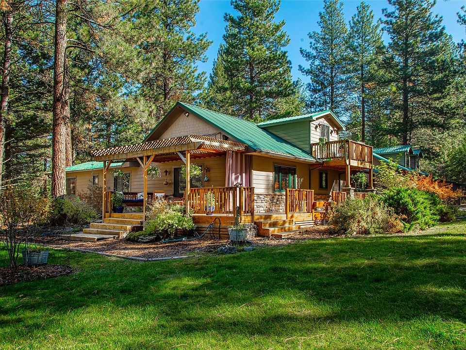 End of the road privacy in Evaro, just outside of Missoula Montana is the location for this peaceful sanctuary. Custom touches in this 1654 square foot home with 2 beds/2baths and a loft currently being used as an art space/office. This home has 4 decks, a garden with a greenhouse and raised beds, a 3 stall storage shed, and a shop with fenced area - perfect for chickens or a dog run. The oversized 2 car garage also has an unfinished apartment upstairs with a deck and skylights. Perfect for guests or a rental! The property is bordered by private land that requires a permit for use. Great horse potential as it is flat, and also short term rentals. This property is located 15 minutes to the airport, and 20 minutes to Missoula. Please no drive-bys as it is located at the end of the road. There are 2 surveillance cameras on the outside of the house. This property is bordered on 2 sides by open land and can be accessed with a permit.