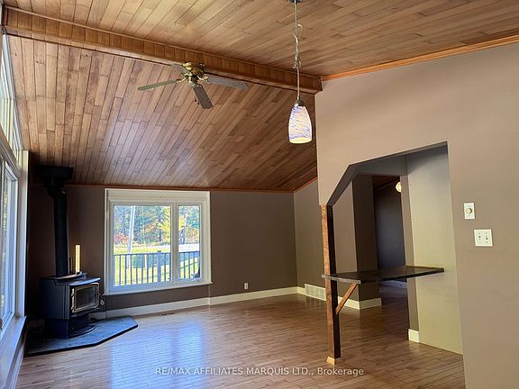 Nestled just a few kilometres west of the charming village of Williamstown, this 1200-square-foot bungalow sits on a picturesque 2-acre property surrounded by mature trees and open skies. The private setting offers a peaceful retreat while still being conveniently close to local amenities. The main floor features an open-concept dining and living area highlighted by soaring cathedral ceilings, large windows that flood the space with natural light, and a cozy wood stove that adds warmth and charm. There are three bedrooms in total, including a comfortable primary suite with its own two-piece bathroom. The full basement provides a clean slate ready for your personal designwhether you envision a spacious family room, home gym, or guest suite. Additional highlights include a metal roof, propane furnace, wood siding, an expansive deck, and an above-ground poolperfect for enjoying summer days in the country. Outdoor enthusiasts will appreciate the direct access to the Peanut Line Trail, ideal for quiet nature walks, biking, or four-wheeling adventures.
