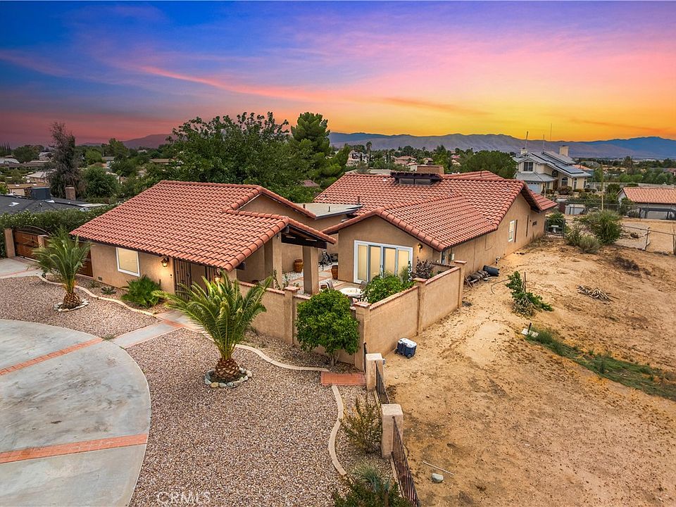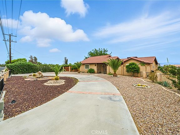 Welcome to this custom single-story home in the prestigious Desert Knolls neighborhood of Apple Valley. Set behind a private gated circular driveway, this 3-bed, 2.5-bath home offers 2,345 sq ft of well-designed space on over half an acre. Step into a serene courtyard with a waterfall feature and a grand front entry that opens to expansive living areas with a brick fireplace and natural light throughout. The kitchen is a chef’s dream with a center island, breakfast nook, and views of the southern mountains and city lights. The backyard is built for entertaining—featuring a covered patio, built-in BBQ, fire pit, and generous space for RVs, toys, or future enhancements. A spacious master suite opens directly to the courtyard, and additional highlights include an indoor laundry room, tile roof, security system, and an attached 3-car garage. Just minutes from shopping, golf, schools, and medical centers, with easy access to the 15 Freeway. No HOA, no Mello-Roos—just freedom, privacy, and views.