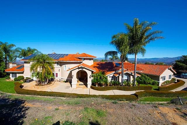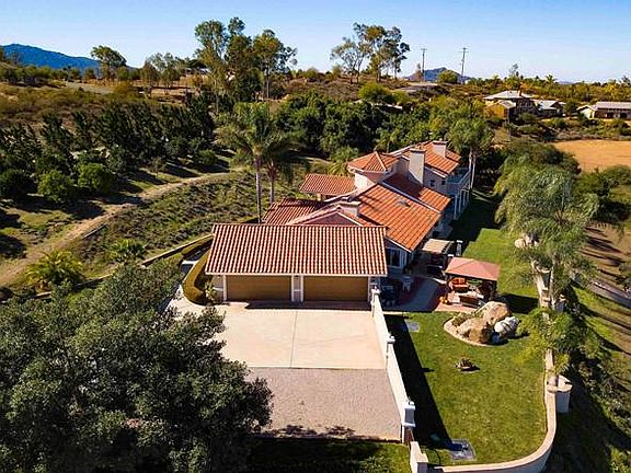 Welcome to your dream home! Situated in the gated community of Highland Hills Estates, this exquisite home has so much to offer including a 4 car garage and a 3,000 square foot workshop with panoramic views! Sitting on just over 8 acres of land with lush citrus and fruit trees, fantastic vegetable garden and over 60 income producing avocado trees. There are three wells on the property along with owned solar, an in ground fire pit with gazebo, horseshoes, and large grassy, fenced backyard. WOW! The interior features 5 bedrooms and 4 and a half baths. The kitchen epitomizes luxury with elegant granite countertops, gourmet stove, rich hardwood flooring, stainless steel appliances and bar seating. Downstairs is booming with space! Living room and family room with open beam ceilings and sitting area. At the end of the hall you will find a separate living space with a cozy fireplace, wet bar, bathroom and bedroom with the potential to create a private granny suite. Two additional, spacious bedrooms with Jack and Jill bathrooms with views as well! Each bedroom downstairs offers built in dressers. On the other end of the home is the perfect space for a home office, a large mudroom/laundry room that leads to the 4 car garage. Upstairs you will find the enormous master suite with fireplace, massive walk in closet and the newly done, private balcony over looking the beautiful mountainous view. The master bath boasts a huge shower, soaking tub and bidet. This is truly a breathtaking home. You must come see for yourself!