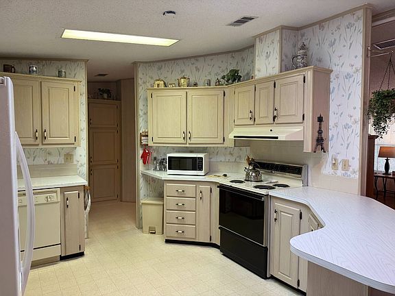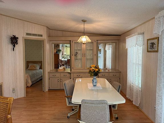This lovely, manufactured home on leased land in a gated and age 40+ is acceptable. Priced to sell at $56,500, the monthly lot rent is $1317. New shingled roof 2024, 2 bedroom/ 2bathroom, indoor laundry, 1316 SQ FT. furnished, garage, screened in lanai, split bedroom plan. Enjoy lots of community amenities such as an 18-fole golf course, a large clubhouse, a gym, a library, a pub, golf pro shop, a heated pool and hot tub, tennis, pickleball, ceramics, poker, bingo, monthly entertainment. Call me to preview