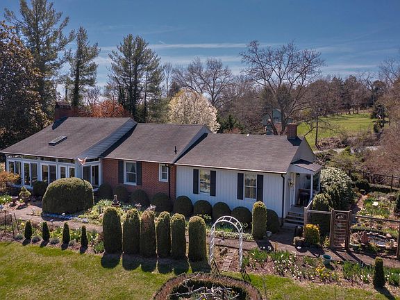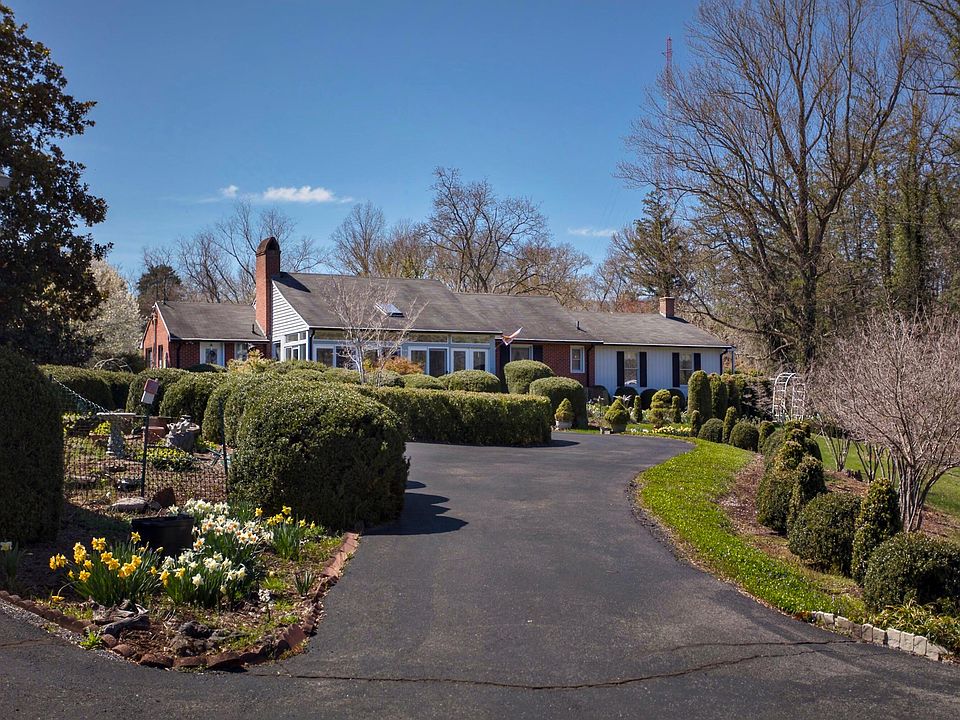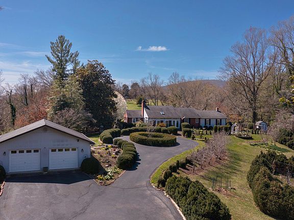 Mile Tree Hill (built 1938) - Named for a venerable oak marking one mile from the old Lexington courthouse, this enchanting 10-acre estate offers one-level living on sprawling grounds with easy walkability to downtown Lexington. Situated among hundreds of boxwoods, formals gardens, and its famous Rock Garden, the well-maintained residence occupies the pinnacle hilltop setting and consists of 2,138 SF, 3 bedrooms, and 2.5 baths including large formal living room with gorgeous moldings, fireplace, archways, and 10' coffered ceiling; master suite with tile bath and double vanity; sunroom with inspiring morning sunshine; cozy family room with coffered ceiling and wood stove; and quality architectural features like hardwood floors and solid paneled doors with hammered brass hardware. Formal gardens and grounds are ideal for enjoyment and entertaining, showcasing some of the most inspiring perennials, scattered ornamental trees like flowering magnolias, pink dogwoods, and holly, and a substantial vegetable and herb garden. A tranquil path leads to the one-acre Rock Garden, begun over 45 years ago and featured on the Virginia Historic Garden Tours in 1995, consisting of huge and unusual limestone rock formations that make natural birdbaths, over 600 American and upright boxwoods with lined gravel serpentine pathways winding through rocks and trees, thousands of daffodils that display their Spring beauty, and vibrant moss, sedums, ferns, and over 100 varieties of wildflowers set among ancient oaks. An assortment of statuary, benches, and pottery bird houses evoke a parklike feeling and invite birds, chipmunks, deer, turkeys, and foxes alike. Additional valuable elements include a paved circle drive with two-car detached garage, additional storage buildings including garden shed and small barn, long road-frontage on two state-maintained roads, back-up generator, natural gas, and city water.