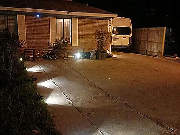 Fruit treeFrench doorsAutomatic sprinklersFire pitTile floors