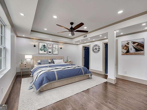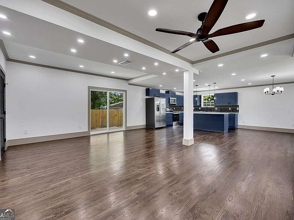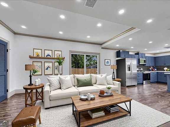 Modern blue cabinetryHardwood floorsNew roofOpen-concept livingStainless steel appliancesCozy breakfast areaUpdated baths