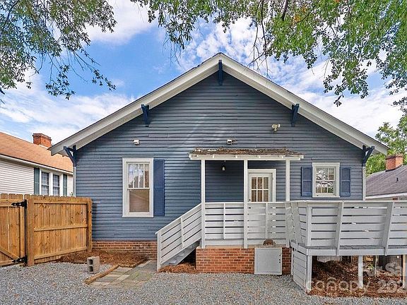 Charming Vintage Bungalow. Step back in time and discover the character and warmth of this beautiful former mill house nestled in the Gibson Village neighborhood of Concord. Built with craftsmanship that stands the test of time, this 3-bedroom, 2-bath home offers classic details including high ceilings with original tongue and groove, original heart of pine wood floors, crown molding, large baseboards, wide doorways, a cozy front porch perfect for morning coffee, and a back porch to watch the sunset. Inside, you’ll find large rooms filled with lots of natural light, fresh painting throughout, a formal dining area with built-in closet, a spacious kitchen with breakfast area, and updated baths, The private fenced in backyard is a hidden gem, offering mature trees, private parking area, detached garage, deck space, and room to garden or entertain. Shared driveway. Walk to the ClearWater Arts Center, take a stroll on the Village Greenway, walk to the revitalized downtown Concord. Don’t miss the chance to grab the living history in this beautiful home. Conveniently located close to local shops, parks, and transit.