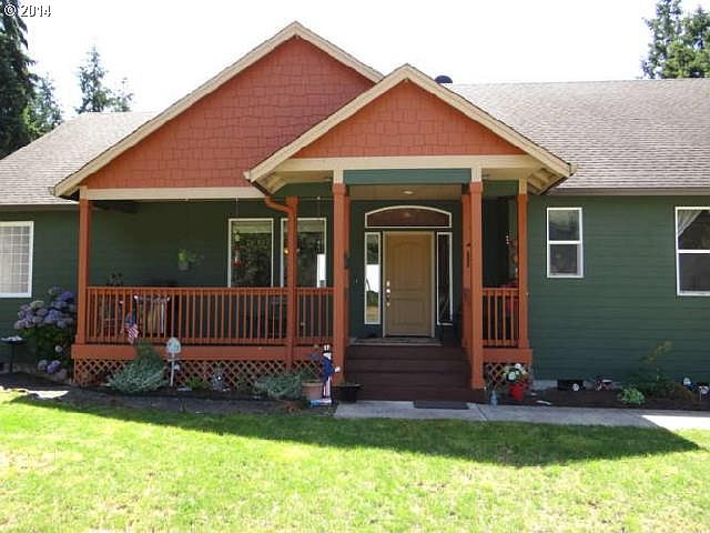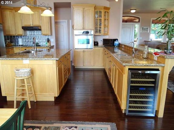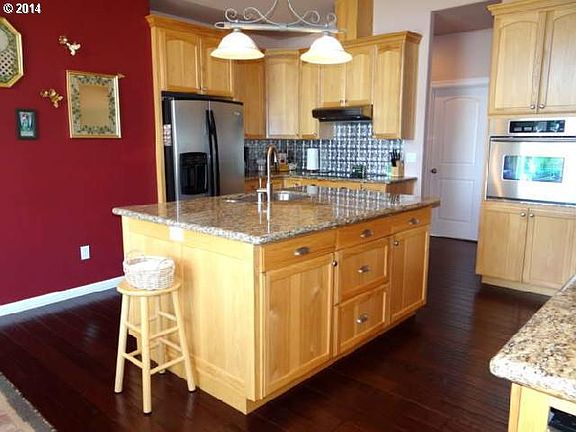 Beautiful custom home w/ great views of Columbia River!Hickory hand scraped style floors,Hickory cabinets,granite slab & SS appliances.Kitchen & Dining has 9ft walls & vaulted.Custom drapes & window treatments.Heated jet tub,glass block shower in master bath.Huge walk in closet.2nd master on main w/ private bath.Built in vac system w/ sep attach for garage plus hot n cold water.12x22 Shop.RV parking.Listen to Bybee creek by firepit.
