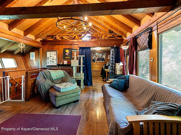 Step back in time with this enchanting cabin nestled at the end of Old Cardiff Bridge Road and along the Roaring Fork River. Surrounded by the breathtaking beauty of Glenwood Springs, with easy access to local hot springs, hiking trails, and outdoor adventures this cabin offers 1 bedroom, a full bathroom, a loft, a cozy living room, a lower level kitchen with a quarter bath, and a laundry and storage area.