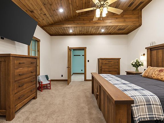 A custom 5,884 sq. ft. of living space designed with versatility, privacy, and comfort in mind. Featuring 9 bedrooms, 7 full bathrooms, 2 kitchens, 2 spacious living rooms, 2 fireplaces, 3 laundry rooms, and a dedicated office, there are two parts to this home which make it ideal for a large family or multiple families wanting to live close together while maintaining their own space. Step inside and be amazed by the details: Custom tiled walk-in shower is almost finished, accompanied by heated floors in the shower and bathroom, quartz counters, real wood throughout, soaring vaulted ceilings, an oversized master walk-in closet with a center island, and a huge walk-in pantry. The home boasts large front and back decks plus an upstairs balcony-style patio, perfect for enjoying the peaceful surroundings. A 3-car garage, workshops, and abundant storage complete the functional layout. Outdoors, the property spans 54.72 acres with one large pond featuring a covered walk-on pier for fishing, plus two additional ponds—excellent for livestock or farm animals, along with cross fencing! Whether you’re dreaming of a family compound, an investment for multi-generational living, or a private retreat with room to grow, this ranch has it all. Bring your family, bring your in-laws—this property is ready to welcome them all!
