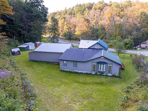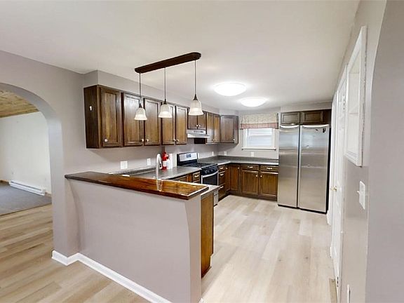 Interior highlighted by open layout kitchen and Family Room addition. The kitchen offers a Breakfast Bar and features new flooring, appliances and countertop. Window filled family room addition offers tongue & groove vaulted ceilings and a Woodstove. Large, bright Primary Bedroom addition with double closets as well as a completely renovated full bath. First floor rounded out by large bright Living Room with open stairwell to second floor. First floor has been gutted and redone to include all new walls, insulation and windows. Second floor offers three cozy bedrooms for children or guests.