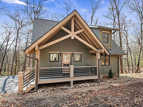 Discover your dream retreat in this charming, newly completed cabin! Seated on a 1-acre parcel of unrestricted land, this enchanting getaway is ideally located just 5 miles from Downtown Blue Ridge and the renowned Mercier's Apple Orchard, making it an excellent candidate for a lucrative short-term rental. Experience the unique sensation of living in a treehouse, surrounded by mature trees that create a serene and picturesque environment. The cabin's interior artfully blends rustic elegance with modern design, featuring rough sawn flooring and beautifully painted accent walls that enhance its warm, inviting atmosphere. Striking stone accents add natural beauty and sophistication, distinguishing this cabin from the ordinary. The use of large timbers in the architecture enhances its aesthetic appeal while showcasing exceptional craftsmanship and curb appeal. Step into the expansive Great Room, where soaring ceilings create an airy ambiance, highlighted by a stunning stone fireplace that serves as the central focal point. This versatile space integrates dining and kitchen areas seamlessly, perfect for entertaining guests or enjoying cozy family gatherings. The cabin includes two thoughtfully designed en-suites, allowing the Primary Bedroom to be situated on either the upper or main level, ensuring privacy and comfort for all occupants. As the sun sets, unwind by the outdoor fireplace—an ideal setting for storytelling and creating lasting memories with friends and family. Embrace outdoor living on the covered deck featuring a wood-burning fireplace, with ample space for a fire pit or hot tub. Buyers have the option to purchase the home furnished, offering a turnkey opportunity you won't want to miss!