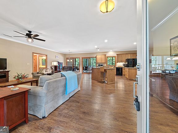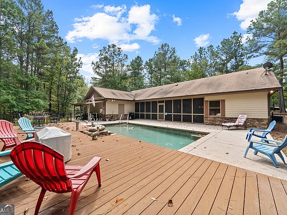Welcome to 194 Deerfield Lane - a custom-built retreat located just 88 miles southeast of Atlanta, perfectly positioned between Lake Sinclair and Lake Oconee in the desirable Deerfield Landings, a private fly-in community. Set on 10 expansive acres, this property offers ample space to build your dream hangar. Fly directly into the neighborhood via the community's grass airstrip, then unwind by the serene pool, ideally situated to enjoy both afternoon sun and cooling shade. Built in 2012, this one-level home features 3 bedrooms and 2 bathrooms. The open-concept kitchen boasts granite countertops and custom cabinetry, ideal for both everyday living and entertaining. The primary suite offers a spacious walk-in closet and a luxurious ensuite bath with a jetted tub and separate shower - perfect for relaxing after a long flight. Enjoy peaceful evenings on the screened-in porch overlooking the pool, or cozy up indoors knowing you're protected during any outage with a whole-home Generac generator. A three-car garage provides plenty of space for vehicles, tools, or toys. Whether you're an aviation enthusiast or simply seeking a tranquil lifestyle with room to roam, 194 Deerfield Lane offers the best of both worlds.