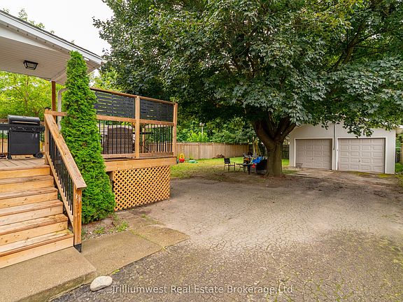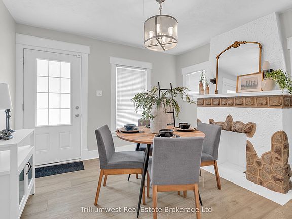 This beautifully updated cottage-style home in desirable East Galt seamlessly blends timeless character with contemporary finishes. The inviting exterior showcases modern stucco paired with expertly crafted stonework, setting the tone for what awaits inside. Step onto the spacious covered front porch and enter a home where every detail has been thoughtfully updated. The stunning fireplace in the front room echoes the homes exterior, featuring a unique stucco and stone façade with a vintage electric log insertadding both warmth and charm. This versatile space can serve as a formal dining area or a cozy sitting room. Elegant arched doorways and new laminate flooring lead to an open-concept living room and an updated kitchen complete with white cabinetry, stainless appliances, ample storage, under-cabinet lighting, a built-in fridge, beveled subway tile backsplash, and a Silgranit sink. Just off the kitchen, a new rear deck provides ideal space for outdoor dining and entertaining. The main floor also includes a spacious bedroom with a large window and a stunning modern farmhouse bathroom featuring a wood-accented ceiling, subway tile tub surround with dark grout, and a sleek vanity with an integrated sink. Upstairs, you'll find two additional well-appointed bedrooms with stylish accent walls and ample storage. The basementwith a separate entranceoffers potential for an in-law suite, income property, or extended living space. Situated on a generous 132-foot deep lot, the property offers parking for 8+ vehicles, plus an oversized two-car garage/workshop with electricalperfect for hobbyists or trades. The new fully fenced backyard includes a custom rolling gate, a new deck with privacy screens, and plenty of room for entertaining or play. Additional upgrades include newer windows, furnace, electrical, and plumbing making this home truly move-in ready. Ideally located near parks, trails, schools, and major amenities, this is East Galt living at its finest.