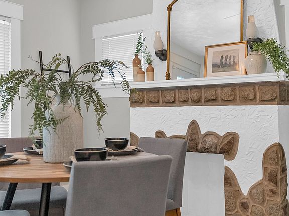 Modern stuccoExpertly crafted stoneworkSpacious covered front porchStunning fireplaceUpdated kitchenWhite cabinetryStainless appliances