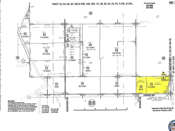 This 75.24 acre land listing is located in the Mesquite Lake Specific Plan Use area. There are four contiguous parcels that comprise this land offering. Parcel APN#040360036 consists of 25 gross acres, and is zoned Mesquite Lake Heavy Industrial (MLI3). The remaining three parcels, APN#040360037,038,039 consist of 50.24 gross acres, and are zoned Mesquite Lake Medium Industrial (MLI2). The land is strategically located next to major transportation arteries, those being Hwy 111, Hwy 86, Keystone Rd, Harris Rd. and Dogwood Rd. The Union Pacific Railroad has service approximately one mile to the west of the subject property. APN#040360036, has a CUP and a five year Sold Waste Permit, and facility renewal permit. There is a farming tenant with a four year lease on the subject property, but the owners have negotiated a buyout provision with the tenant in the event that a sale of the property can be negotiated.