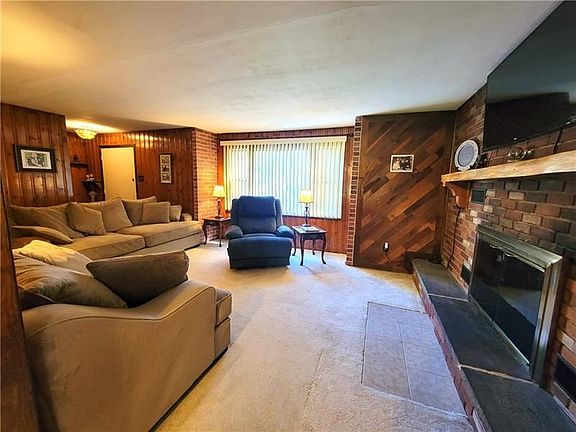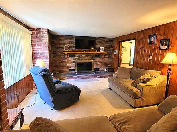 Beautiful home on an Acre lot! Meticulously maintained yard! Large Living room with large window, stone mantle and wood-burning fireplace. Open Dining room and Kitchen with side dining bar! Updated apron style countertop with farmhouse sink. Wood cabinets and recessed cabinet lighting! Enclosed back porch leads to the back patio! Master Bedroom with spacious closet overlooks the backyard. Two more bedrooms upstairs. Large hallway closet, and full bathroom make up the second floor. Finished Family room in the basement. Laundry room with workshop area and plenty of storage. Fantastic back patio to enjoy the large backyard with outdoor fire-pit, and volleyball posts. Bonus storage shed and carport. 2-car attached garage with heater makes a great work area.