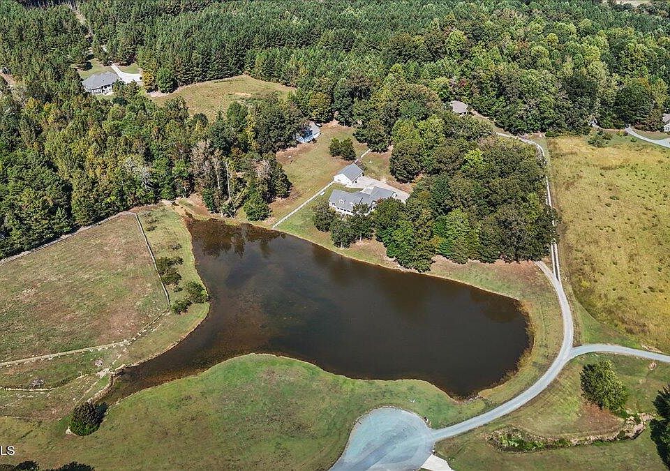 Rolling countrysideWide front porchSymmetrical built-insTimeless with white sidingBreathtaking viewsLarge gas fireplaceLarge private pond