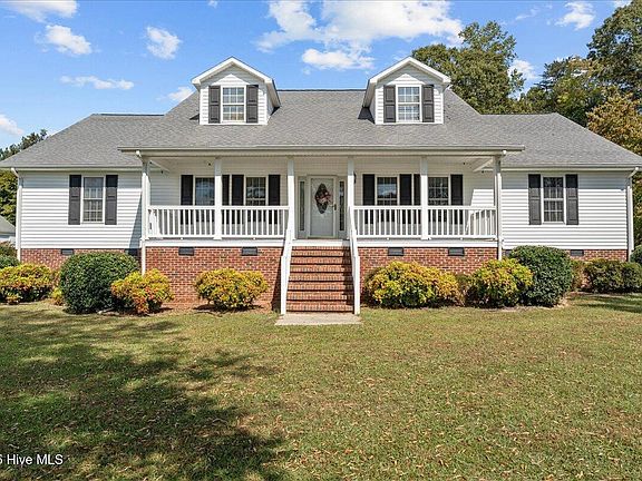 The home itself is timeless with white siding, black trim, a wide front porch, and spacious back porch & patio designed for enjoying the outdoors. Inside, you'll find 3 bedrooms, 3 full baths, a huge kitchen built for gatherings, and custom details throughout. A large gas fireplace with symmetrical built-ins give the center of the home a grand feeling upon entering. This home has been meticulously maintained, reflecting true pride of ownership.