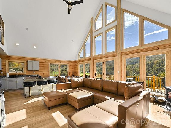 Welcome to your dream RETREAT and ultimate INVESTMENT opportunity at 194 Fox Run Road in Canton, NC—an exquisite NEW CONSTRUCTION A-frame log cabin that seamlessly blends rustic charm with modern luxury and picturesque MOUNTAIN VIEWS. This stunning residence sits on over 2 ACRES of land and boasts three beautifully appointed bedrooms, an office for your convenience, and three full bathrooms, offering ample space for living and working.