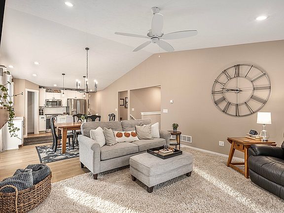 Welcome to this beautifully maintained Redstone Farms condo in Kalamazoo, offering 3 bedrooms, 3 full bathrooms, and 2,650 square feet of finished living space. The open-concept living room features cathedral ceilings, abundant natural light, and a sliding door that leads to your private deck overlooking a spacious yard—perfect for both indoor and outdoor entertaining.