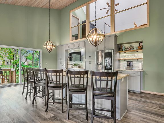 Say hello to forever! Fabulous contemporary home tucked away in a picturesque wooded wonderland! You'll never find another home quite this special or a kitchen so grand! NEW custom cabinetry with expansive 12 ft center island, stainless steel farmhouse sink, granite surfaces perfectly framed by custom tile backsplash. How could we not mention the soaring two story vaulted ceilings or the custom lighting, coffee bar, and the pantry of your dreams? Ideal open floor plan! Freshly painted! SPACIOUS living and dining rooms share the glimmer of the gas fireplace, perfect for the cooler months! Soaring oak tongue in groove vaulted ceilings cover the living room, dining room, kitchen, and loft! Host graduation parties or holiday events in the ginormous walk out basement complete with office/ 5th bedroom, huge family room with wet bar and full bathroom! Primary suite with ensuite, a walk-in closet that will make your purse collection smile, and a private balcony overlooking the lush green landscape! What a relaxing way to spend your evenings after enjoying all the outdoor fun Hollow Way offers! Great size guest bedrooms! Loft space with den area for your gamer or game room area! Great storage space for seasonal decor! Three car garage! 1.11 acres! Come explore your dream this weekend!