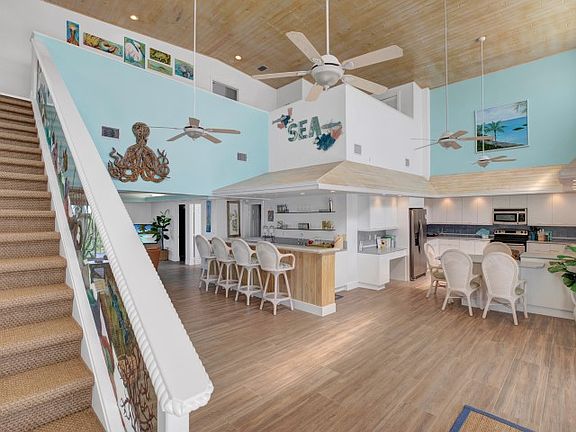 At ground level you'll love stepping into the gorgeous new heated pool. The 50' concrete dock with electricity, water and a fish cleaning station is perfect for boaters, fishermen and water enthusiasts. Poolside is a covered patio area with a table and lounge chairs perfect for relaxing out of the sun. This area has two sets of sliding glass doors to an indoor living area with a bath, mini kitchen and sleeping area with king bed. This property is managed by Keys Holiday Rentals.