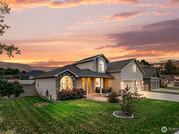 Welcome to this thoughtfully crafted 4-bedroom, 2.5-bath residence with a bonus room and dedicated den in Meadow Brook, one of Sunnyslope’s most sought-after neighborhoods. From the charming covered porch with stamped concrete to the inviting interior, every detail showcases comfort and style. A striking double-sided fireplace anchors the main living spaces, filling both the dining and living rooms with warmth and ambiance. The layout is ideal for both entertaining and everyday living, with a fenced backyard and spacious patio ready for gatherings or quiet evenings outdoors. A harmonious blend of sophistication and practicality, all in a premier location close to schools, parks, and all that Wenatchee has to offer.