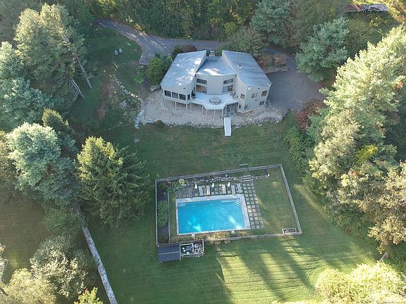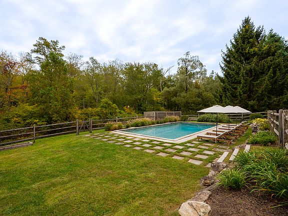 Tucked away on more than three acres, this light-filled contemporary offers space, style, and flexibility in one of Fairfield County's most desirable towns. With 5 bedrooms, 3.5 baths, and over 3,100 square feet, the home is designed for everyday comfort as well as year-round entertaining. The main level highlights dramatic architecture with vaulted ceilings and walls of windows that frame the outdoors. A chef's kitchen with center island connects seamlessly to the dining room, sunroom, and deck, all overlooking the 20x40 heated pool. The private main-level suite includes a sitting room, gas fireplace, spa bath, and walk-in closet. The lower level features three additional bedrooms and a large family room with French doors, creating plenty of space for guests or play. An in/law suite with its own entrance, kitchenette, and full bath is ideal for in-laws, an au pair, or a home office. Just minutes from the train, Redding Country Club, and scenic parks-and less than 90 minutes to Manhattan-this property combines the best of country living with everyday convenience.