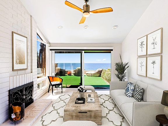LIVE THE OCEANFRONT LIFESTYLE - Discover unmatched coastal living at this oceanfront residence in the highly-desireable Encinitas neighborhood of Leucadia. With unobstructed panoramic views of the Pacific Ocean offering magical sunsets, this is a rare opportunity to own beachfront property in one of Southern California’s most vibrant seaside communities. Located in a private six-unit oceanfront enclave, this property offers low HOA dues and an intelligently designed layout featuring a first-floor bedroom and full bath, remodeled kitchen and baths, dramatic vaulted ceilings, abundant natural light, an oceanfront backyard, bonus east-facing balcony ideal for sunrise views, mini-split AC/heating units for year-round comfort, generous attic storage, spa-style soaking tub, & finished one-car garage with two additional parking spaces. Just steps from local coffee shops, restaurants, surf breaks, and sandy beaches, this home offers the quintessential Encinitas lifestyle—laid-back luxury in a walkable coastal setting. Some virtual staging included to help you reimagine the space. Come and tour this oceanfront gem, 194 Neptune! 1. Unobstructed panoramic ocean views from an almost 400sf backyard patio, 2. (1) Bed and Full Bath with soaking tub downstairs 3. 2 completely remodeled baths (down to studs), see documents tab for list of many upgrades 4. Year-round comfort with upgraded Mini-Split units-AC/Heat 5. Low HOA $250/month 6. Small exclusive enclave of 3 buildings, each w a duplex and a 1 car garage PLUS 2 dedicated guest spaces 7. Duplex layout, no one above or below you and your own garage. 8. High ceilings throughout home and lots of light. 9. Easy beach access via Stonesteps, or Moonlight Beach 9. Bonus east facing private balcony to enjoy purple sunrises 10. Stroll to many cafes, restaurants and shopping. Technicolor sunrises and sunsets!