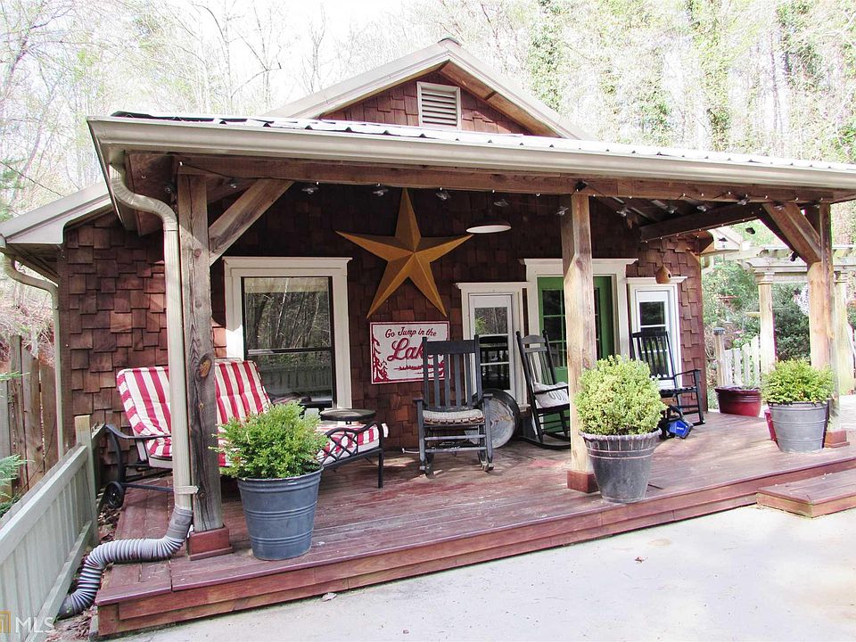 Adorable home in the mountains with apartment and guest house and is like no other! Apartment has kitchenette, full bath, bedroom and living area that can be rented out easily. Guest house has upstairs BR and living area an unfinished storage area as well. Lots of decks and huge patio with porch. Great "getting ready room" with lots of storage and sink. New gas range in cute kitchen with stainless fridge. Beautiful gardens chocked full of flowers trees and shrubs. Tucked in the woods with so much privacy you will love this mountain gem.