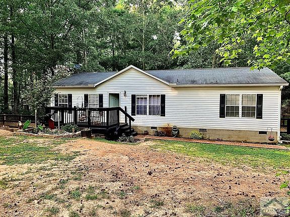 194 Poca Rd. is located in one of the most untouched and untethered land districts of Madison County just outside of Ila. Offering close to 6 acres of land you'll enjoy gorgeous grassland views and sweet serenity nestled in the quiet countryside of this fixed up and recently updated property. Added exterior emblements that weren't a part of the original property include a two car garage with power, a spacious front deck/ patio area, two small sheds, one big shed in the backyard, additional parking, attached fencing, a small coop for chickens, bunnies and other small animals. Not to mention the interior to this property is no regular run-of-the mill mobile home, it includes even more updates that run with the property. ALL appliances included, updated wood flooring, updated countertops and backsplash, window blinds and treatments. Plenty of bedroom space as well featuring an owners suite with a walk-in closet and whirlpool bath, an additional living room, plus two additional bedrooms and an additional full bathroom. If you're looking for you're next home, this property has it ALL. Added benefits of living in this area include less than a mile from Ila, Madison County Rec Department, Madison County Award Winning School Systems, gas and groceries. Find your peace here at 194 Poca Rd!