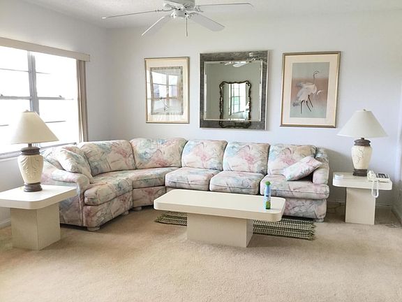 55+ Resort Living. Well maintained 1 BR 1.5 BA 2nd flr condo. Light, Bright & Open, overlooks canal & pool. Fully Furnished & Equipped, C/A, full wall closets, lots of storage, assigned parking. Elev, laundry on same flr. Use of all facilities, basic cable included. Min 90 day lease. Seasonal neg. Tons of amenities & programs. Room measurements approx.