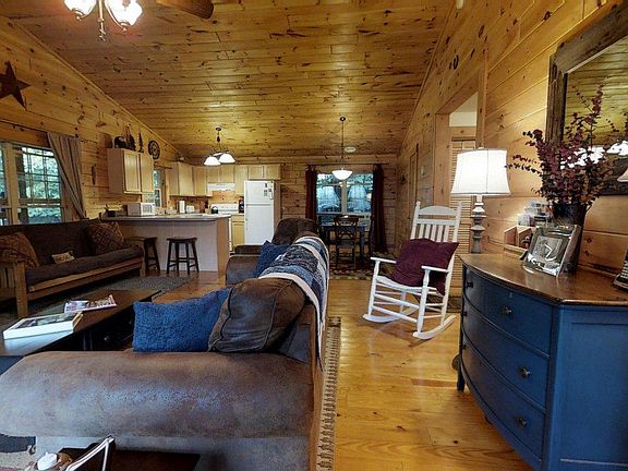 After arriving at your destination enter the gates up to our place. The covered front porch and wrap-around deck promise true relaxation surrounded by nature and the soothing sound of a rushing creek. Numerous windows allow natural light and views of wildlife and nature from every room. Step inside to a spacious living room with stacked stone gas fireplace and well equipped for electronic entertainment (HDTV, 53 cable channels, DVD, and new Sound Bar. You will also find a collection of board and card games, DVDs, kids' books and toys in the cabin available for your use and Free WIFI. Ample seating in dining room and at kitchen bar. Nicely appointed kitchen with all of the necessities as well as a few fun extras like a French press for the coffee connoisseurs, a blender ( smoothie or Margarita anyone?) and flip Belgian waffle maker. Enjoy the nicely furnished Master Bedroom featuring an outstanding view of the sunrise over Rich Mountain as well as the side deck and hot tub. New Serta perfect Queen bed. Extra blankets and pillows in each closet for cuddling near the fireplace, on the deck or just for extra cozy on those cold winter nights. The second bedroom also boasts second new Serta Perfect. A linen closet with extra sheets and towels, a stacked washer and dryer, and detergent and fabric softener are provided for your convenience. During the warmer months we love to eat all meals on the deck. Some times in the rocking chairs on the front and others on the side at the table. During Winter, grab a hot chocolate or cider and cozy up to the gas fireplace or step outside and luxuriate in the four-person HOT TUB! Featuring soothing jets, headrest and LED lights in multiple colors to suit your every mood. Wonderful privacy facing Rich Mountain at sunset. Especially invigorating in the cold night air, hot water bubbling and steam rising and snow falling all round.... Cabin sits on 1.24 acres, but the views stretch for miles. Hiking trails begin right at the front door to Rich Mountain and surrounding area. Also available are: skiing, snow tubing, kayaking, river rafting, fishing, and restaurants. The smaller Valley Grocery is 5 minutes away a larger Food Lion grocery store is 13 minutes away in Mountain city or Ingles Grocery is 15 minutes and Publix 23 minutes away. Visit Boone, Banner Elk, Vilas, and Todd for restaurants and shopping. Find our personal favorite local attractions in the Welcome Book. FOR WINTER BOOKINGS READ AMENITIES CAREFULLY ABOUT THE TYPE OF VEHICLE YOU MUST HAVE TO ACCESS OUR CABIN **While we are Dog friendly, they have to be approved and paid before arrival. $75 per week for first dog and $15 for additional one. Dog fee goes towards the deeper cleans needed after their stays. ** Reasons people site in our guest book for coming, Out the door Hiking, Honeymoon, Birthday, Anniversary, quiet get-away after tragedy, down time, family time, Leaf chasers, etc. We have even had a proposal while on vacation at our place. This is a vacation rental, however since Hurricane Helene we are occassionally able to offer our place out at 30 days at a time. Anderson Mountain Rentals for more details. House is furnished and rentals over 30 days generally not accepted without owner permission. I can't find a place to note a pet fee. 30 days stays require a $150 pet fee. Deposits are refundable after the house has been checked upon move out.
