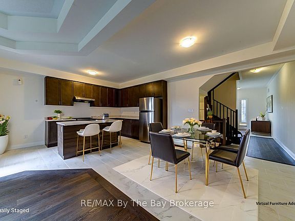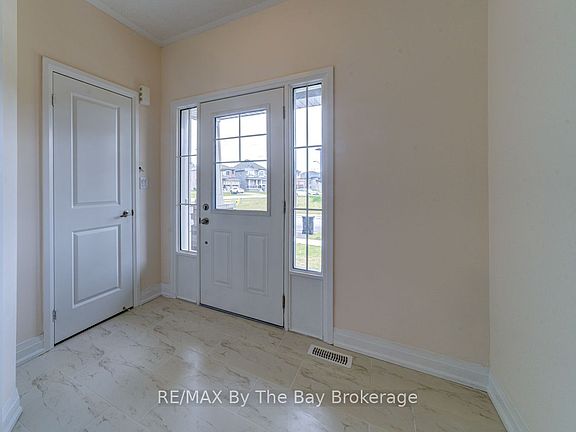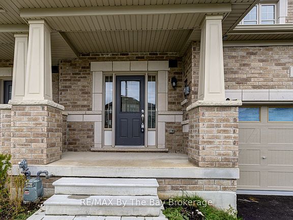 Welcome to "The Rush," a modern, all-brick townhouse crafted by Centurion Homes in the sought-after Rivers Edge community of Wasaga Beach. Built in 2023 and offering 1,816 sq. ft. above grade plus a full unfinished basement, this home blends quality construction with thoughtful design in a growing family-friendly neighbourhood. Step inside to a generous foyer finished with 12x24 tile, leading to a convenient 2-piece bathroom and an open-concept main floor ideal for everyday living and entertaining. The kitchen features stainless steel appliances, a double stainless steel sink set into the centre island, and direct access to the private rear patio. The adjoining dining area flows into a spacious living room with hardwood flooring and serene views over the backyard. The upper level is designed for comfort, starting with a large primary bedroom complete with hardwood floors, a walk-in closet, and a luxurious 5-piece ensuite. Two additional well-sized bedrooms-also with hardwood flooring, a 4-piece main bathroom, and a separate laundry room provide excellent convenience for families. The full-size basement offers future potential with an unfinished layout and rough-in for an additional bathroom. Additional features include inside entry to the garage, municipal water and sewer, natural gas, a Lennox furnace, air conditioning, HRV system, and a 200-amp electrical panel. The paved driveway adds to the home's move-in readiness. Rivers Edge is a vibrant new development offering a scenic trail system, access to the Nottawasaga River, and close proximity to a brand-new public school, with a high school coming soon. Enjoy being just a short drive to the world's longest freshwater beach and the four-season recreation of Blue Mountain. A perfect blend of comfort, style, and location-this is Wasaga Beach living at its finest.
