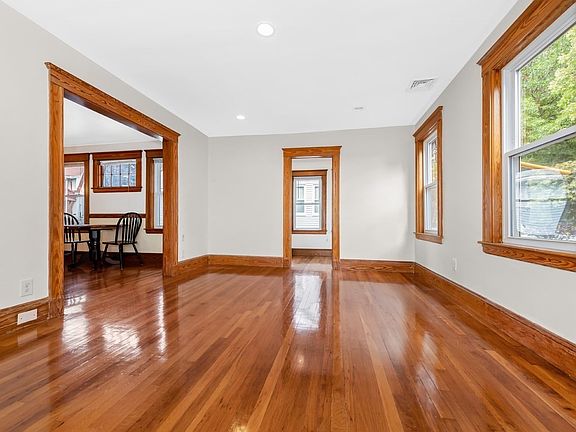 Spacious, sunny, and sparkling 2nd and 3rd floor condo in desirable East Watertown! The main floor has a flexible and open floor plan with hardwood floors throughout, high ceilings, central air, and replacement windows. The front facing living room has a recessed lights along with a sunroom and enclosed front porch. Dining room has a decorative natural wood chair rail and atrium window before leading to the kitchen breakfast bar. Kitchen has been fully updated with granite countertops, plenty of wood cabinets and stainless-steel appliances. Full tiled bath with glass shower door and centered between two bedrooms. Top floor consists of a home office and full dormer master suite. Complete with glass shower stall, jacuzzi tub and oversized vanity. 3rd floor washer dryer off the master bath. One garage spot and another off-street, private back deck overlooking the shared backyard. Storage in the basement along w/ gas heating for the unit. Convenient to 71 bus, Arsenal Yards.