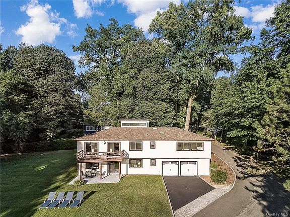 Waterfront living Spacious home with cathedral ceilings on a in an exclusive private compound of just 18 luxury homes. This house sits on almost 1 acre of beautifully landscaped lawns and provides a lofty view of the lake. It is just 20 minutes from NYC and close to award winning restaurants, high end shopping and more. Welcome your mornings to the chirping of songbirds. Have your breakfast from your upper floor balcony looking out on a large scenic lake. After breakfast , you can kayak, fish or just take a relaxing walk along the lake and observe nature in at its best. This house has it all. Everything is brand new. Be the first to enjoy it all. New floor to ceiling picture windows provide stunning views of the lake. The double size eat in kitchen has new mahogany cabinetry, granite countertops with state of the art sub zero appliances. There are three new Greco marble bathrooms. There are also several Swarovski crystal chandeliers in the soaring entry foyer and dining areas. The plumbing, and central heating and air conditioning systems are new. With several skylights providing sunlight all day, and with its wide and open layout , this house is the perfect place to live luxuriously, entertain lavishly and work seamlessly from home. The lower floor has its own separate entrance and bath and its own balcony overlooking the lake. It is ideal for another family to live with you and to share your good fortune. And as the day comes to end, have a glass of wine and enjoy spectacular sunset views from your 24 foot double balcony. An amazing deal