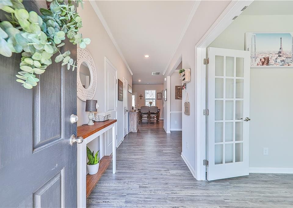 Welcome to your new home, an immaculate 2020 build with 4 bedrooms and 2.5 baths that has had several updates! Nestled in a tranquil cul-de-sac, this peaceful and comfortable home offers a blend of contemporary elegance and practicality. Step inside the French doors to find an office bathed in natural light. Imagine the possibilities of this sun-kissed sanctuary where creativity blooms and inspiration freely flows. The heart of the home is the roomy kitchen with stainless steel appliances, a walk-in pantry, pristine white cabinets, granite counters and an island…ideal for culinary adventures. Picture yourself concocting culinary masterpieces with laughter and aromas filling the air. Upstairs, retreat to the owner's suite with his-and-hers closets and tray ceiling. The updated (2023) owner suite bath has a spacious walk-in shower and double vanity, a sanctuary of relaxation. The laundry room is conveniently located alongside the bedrooms for seamless daily routines. Entertain with ease in the basement where a spacious man cave stands ready to host festivities and celebrations, enveloping guests in an atmosphere of joy and camaraderie. Discover the professional woodworking shop, awaiting transformation per your desires. Envision it as a haven for your craft, a studio for your passions, or perhaps a space for new beginnings, a canvas awaiting your personal touch. Outside, a fenced backyard that backs up to the woods beckons, offering privacy and serenity. Picture yourself gently swaying on the swing or basking on the large deck with family and friends making cherished memories. This dog friendly neighborhood offers sidewalks, swimming pool and splash pad, lighted tennis courts and basketball court, playground and picnic pavilion. Conveniently located near delicious dining options, shopping, gyms, parks and highly-rated schools, this home offers a perfect blend of style, comfort and practicality. Don't miss out on the opportunity to make this your dream home or share it with someone for whom you know it would be the perfect fit! Contact us to schedule a private showing today!