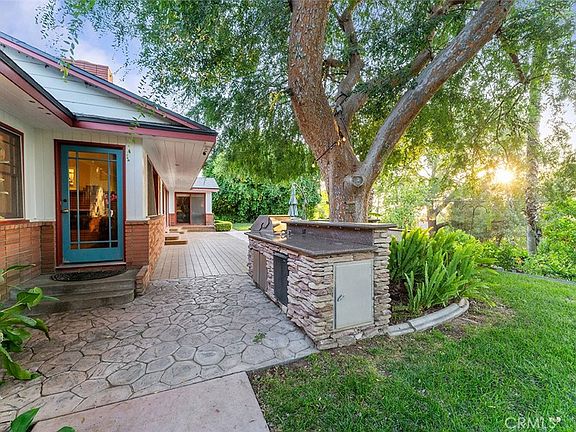 As guests arrive, they are charmed by the approach: stepping up from the quiet street, passing under a covered pergola, welcomed by a rose garden encircling a fountain that has just the right trickling sounds; a gentle prelude to what lies inside. Entering through a beveled glass door into the cozy den w/ its inviting fireplace & built ins, the warmth of the home immediately unfolds.