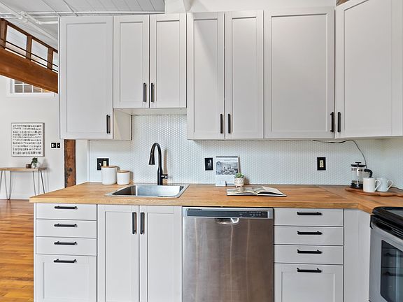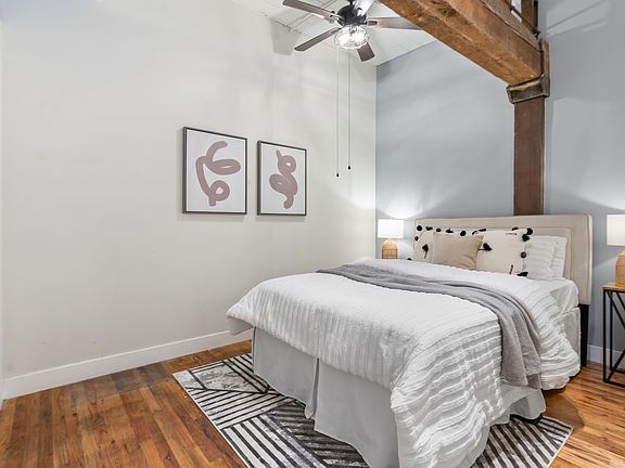 This unit has 2 non-conforming bedrooms and 1 bathroom, and features the original hardwood floors, exposed ductwork, lots of natural light, stacked washer/dryer in the unit, completely updated kitchen, and an added mudroom in the entrance.